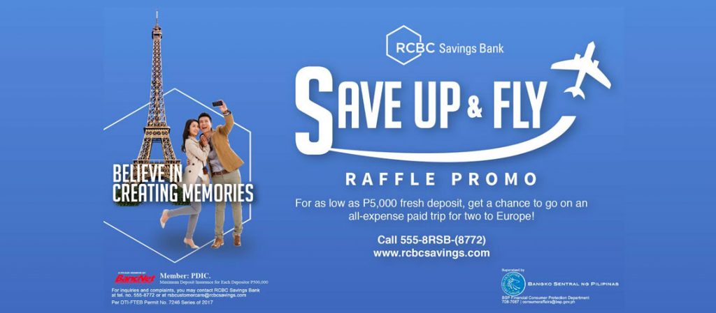 Filipinos wishing to visit Europe will now have a chance to make their travel dreams come true with the new “Save Up and Fly” promo from RCBC Savings Bank (RSB).
