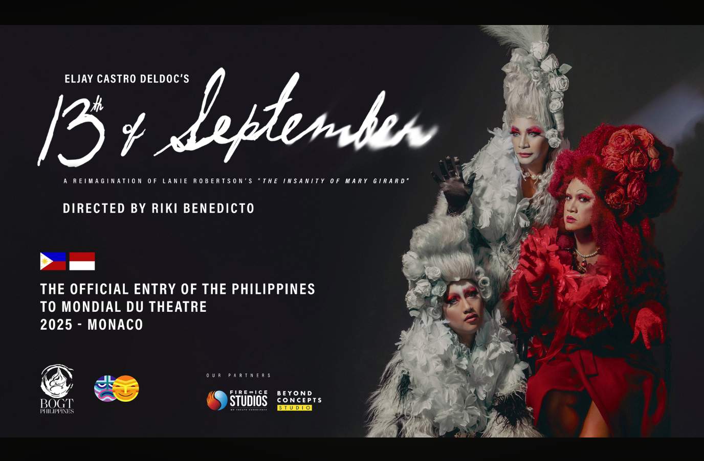 BOGT Philippines proudly announces that its critically acclaimed production 13th of September has received its third invitation to an international theater festival, this time at the prestigious 18th Mondial du Théâtre in Monaco, scheduled from August 20 to 27, 2025. This marks a historic moment as the Philippines participates for the first time in this esteemed quadrennial event, established in 1957.