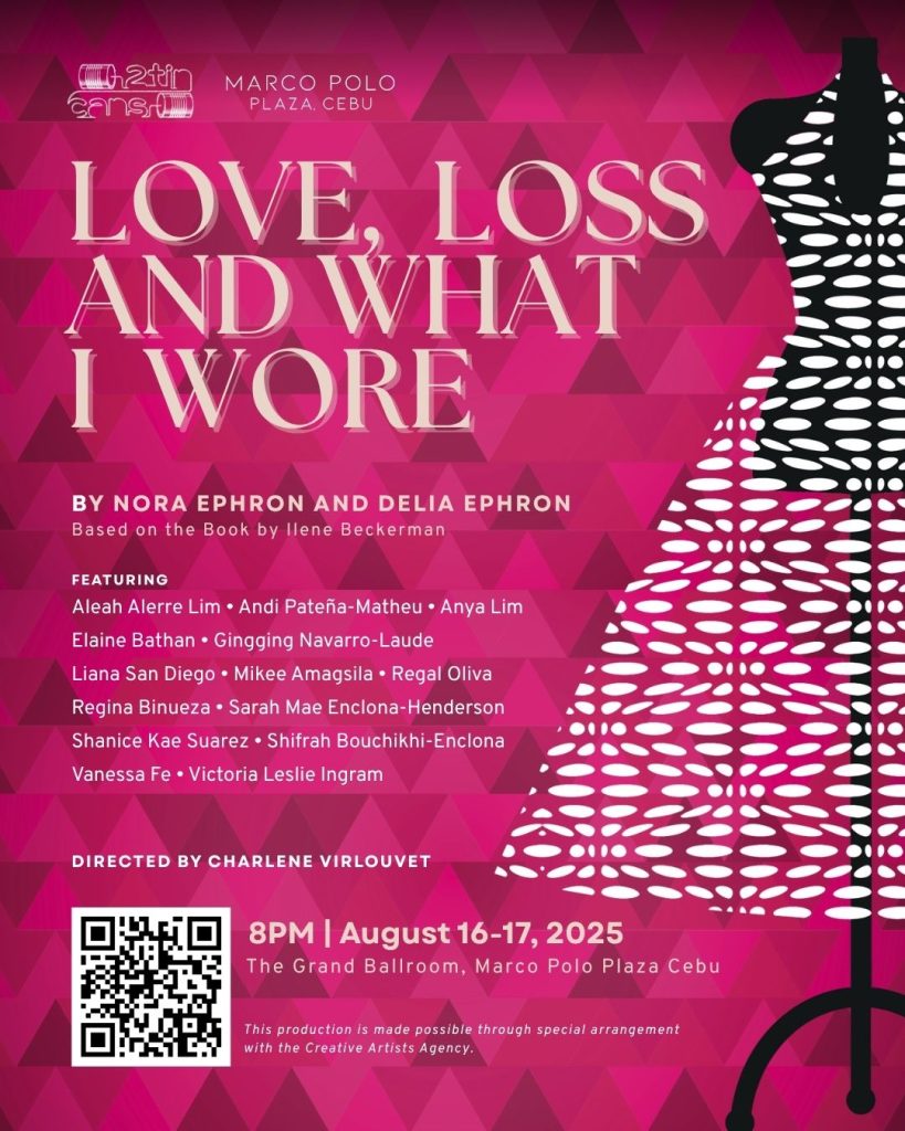 2TinCans Philippines, Cebu’s premier theatre communications company, in partnership with Marco Polo Plaza Cebu, brings the acclaimed production Love, Loss, and What I Wore to the stage. The show will run at 8 PM on August 16 and 17 at the Grand Ballroom of Marco Polo Plaza Hotel, Nivel Hills, Apas, Cebu City.