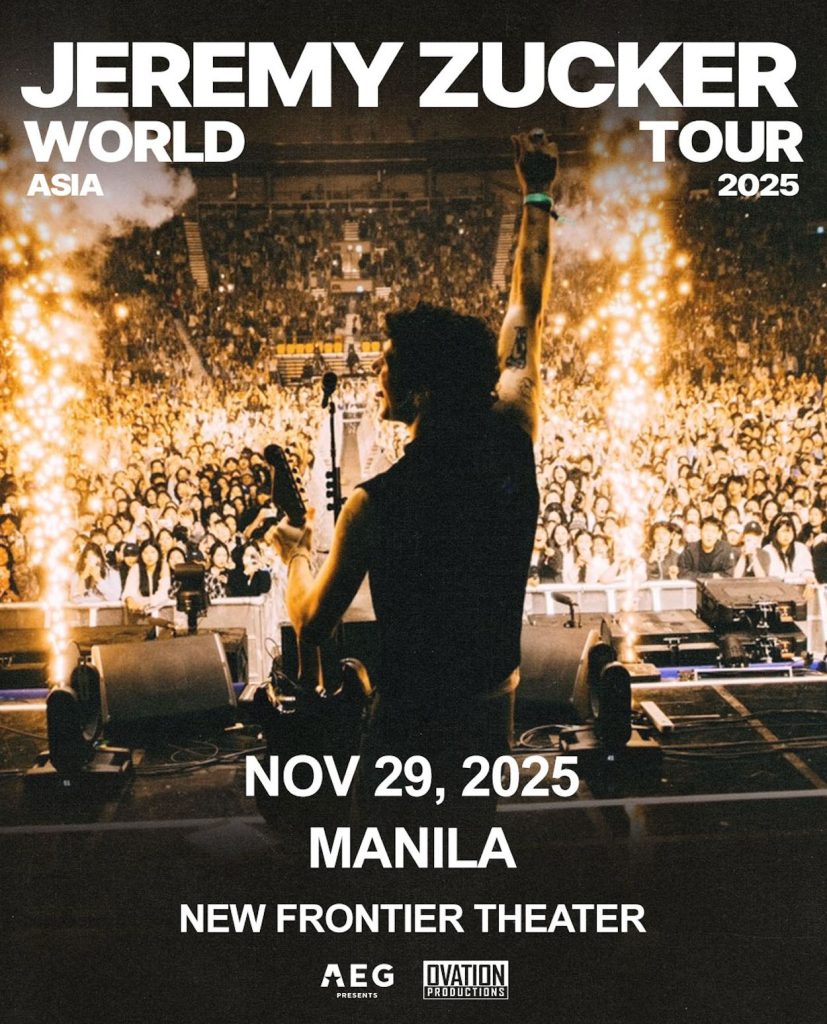 Promoted by AEG Presents Asia and Ovation Productions, Jeremy Zucker – World Tour 2025 in Manila will take place on 29 November 2025 (Saturday) at the New Frontier Theater. Tickets start at PHP 2,500 and will be available via Ticketnet.com.ph beginning 20 August (Wednesday) at 12PM.