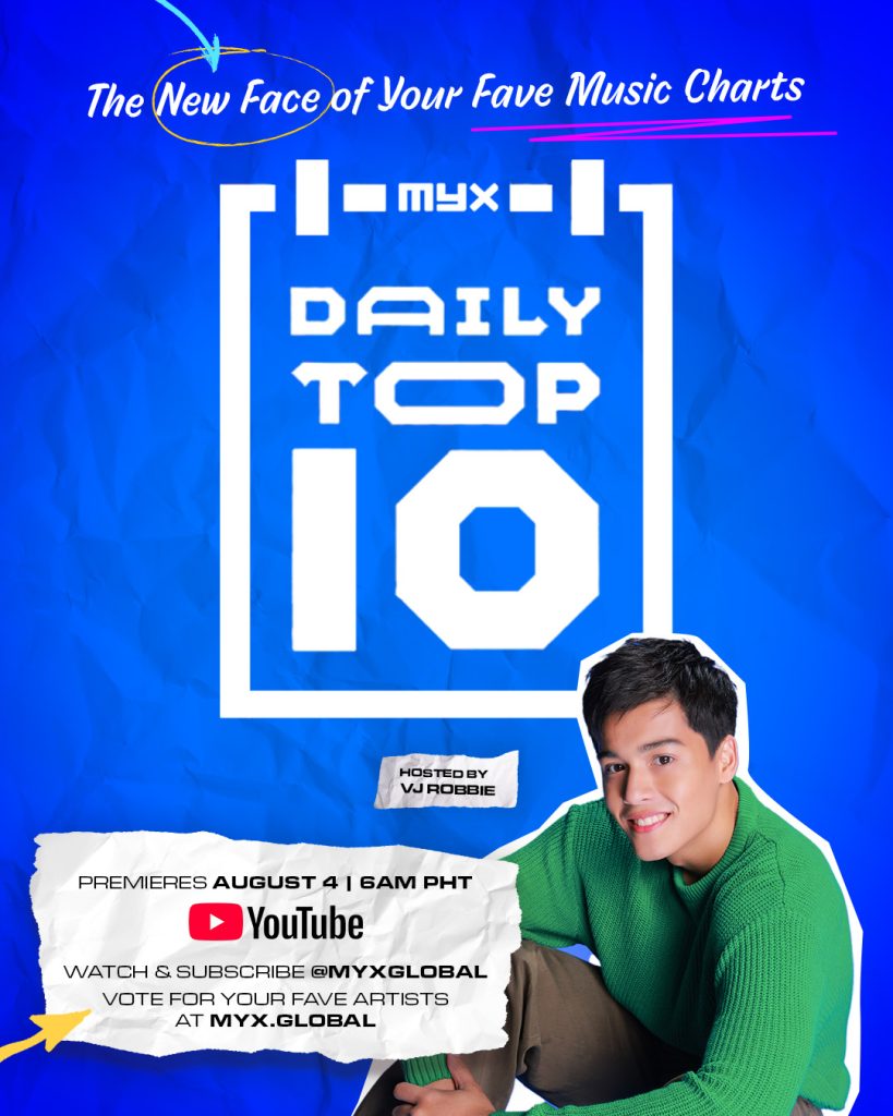 Don’t forget to vote for your favorite artists on myx.global and tune in daily for your music fix with MYX Daily Top 10, hosted by VJ Robbie.