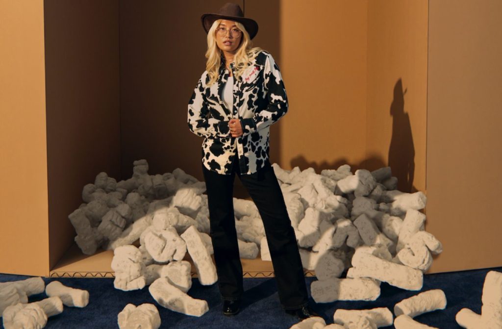 Ribcage Bell: A fresh twist on Levi’s® favorite silhouette, featuring cow print waistband, smile pockets, and “Howdy” embroidery.