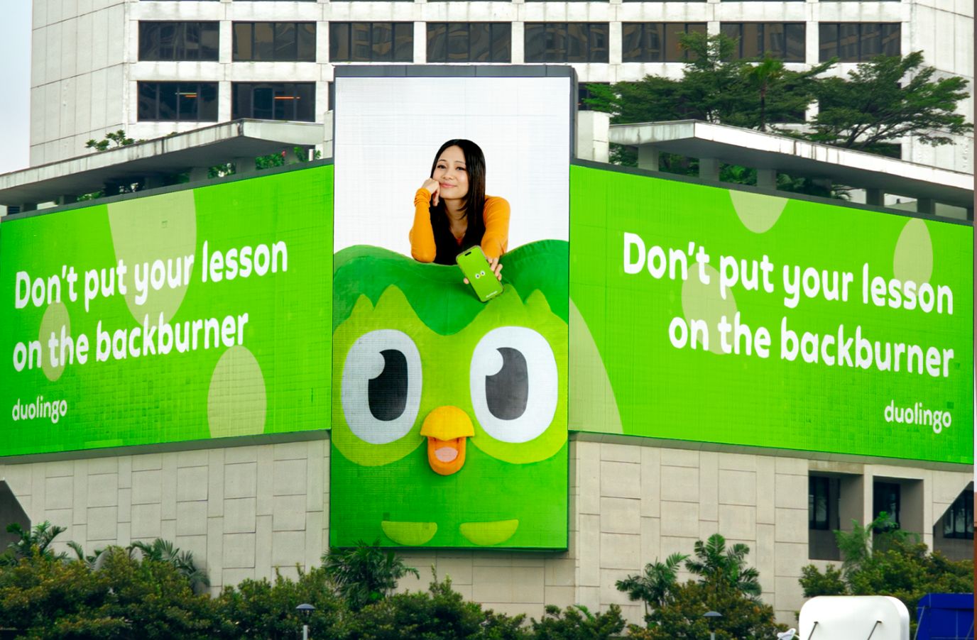 Offline activations extended the campaign into public spaces through lyric-inspired installations at the Mandarin Oriental, Jakarta in the Thamrin area. The installations reimagined lines from Backburner with Duolingo’s signature playful tone, turning them into interactive reminders that encouraged audiences to stay consistent with their language learning journey.
